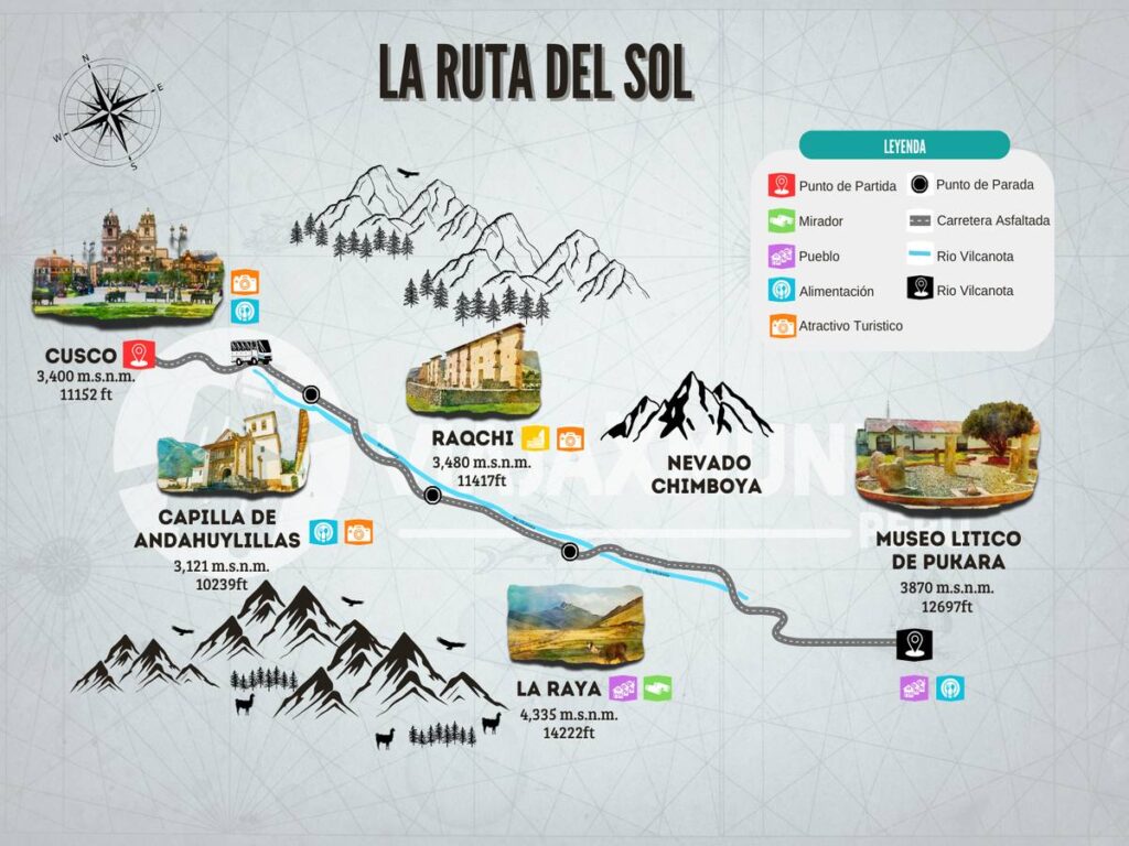 RUTA DEL SOL DE CUSCO A PUNO es uno de los recorridos más completos del Perú, ya que conecta las ciudades de Cusco y Puno a través de un camino lleno de historia, arte y paisajes andinos. Además, este trayecto permite apreciar la transición entre el fértil Valle Sagrado y la grandeza del altiplano. Por lo tanto, el tour se ha convertido en una experiencia obligatoria para quienes desean conocer más de la Ruta del Sol